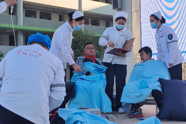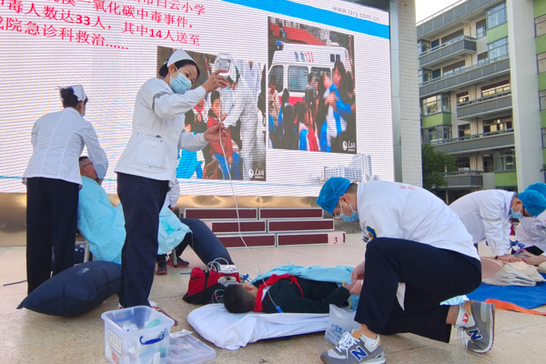 伴隨著醫務人員深入簡出的講解,師生們積極互動,在演練中加深了對一氧化碳中毒救治知識的理解。