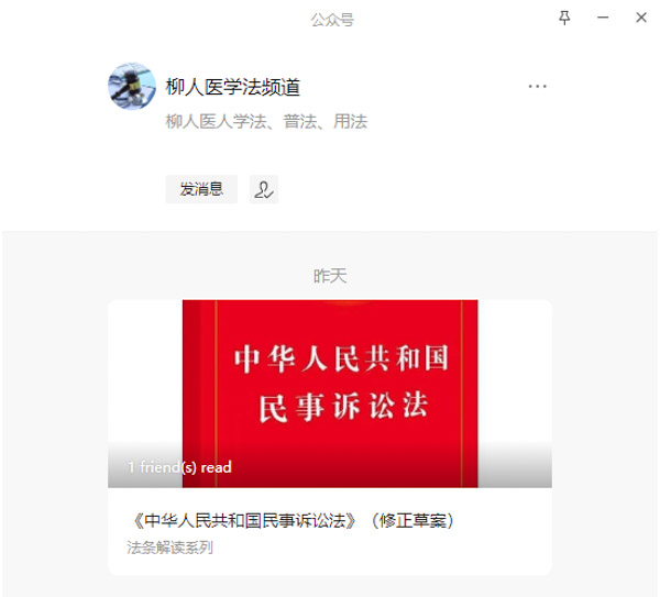 制定了年度普法宣傳計劃,充分運用宣傳欄、橫幅、電子顯示屏、微信公眾號等開展《基本醫療與健康促進法》《醫師法(草案)》等普法宣傳,向全院職工推出“柳人醫學法頻道”微信公眾號,作為醫院微信公眾號、院內網、微信群組等普法宣傳教育媒介的補充。
