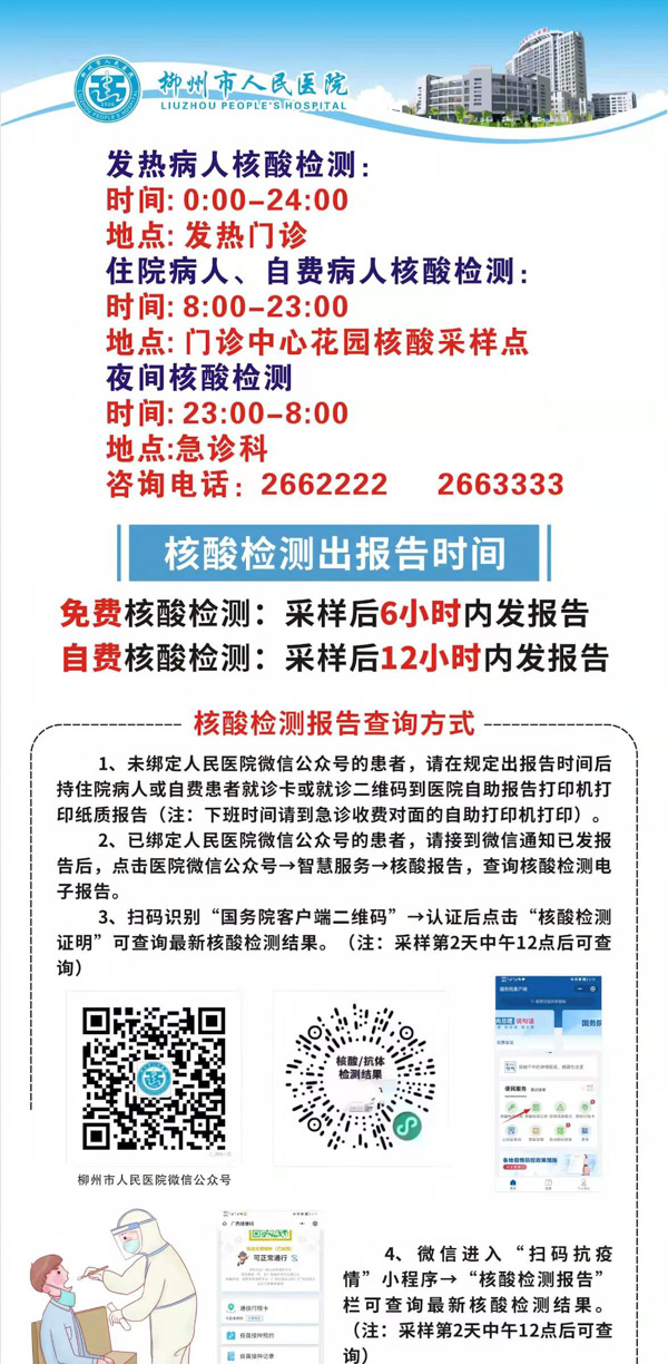 我院微信公眾號、智慧醫院均設有核酸采樣的相關信息,并提供24小時線上核酸檢測咨詢服務。