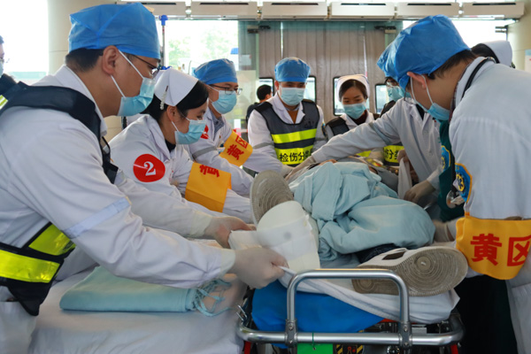 在科室內部積極開展醫護配合急救技能競賽、大型突發事件醫療衛生救援應急演練;2021年8月,急診醫學科參加全市院前急救醫護人員急救技能考核,全員優秀通過。