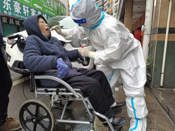 我所在的流動采樣點是以一輛公交車為站點,隨時在需要進(jìn)行核酸采樣的區(qū)域建立臨時采樣點,為群眾進(jìn)行核酸采樣。對于行動不便的人群,我們還親自上門進(jìn)行采樣。只要群眾有需求,我們多走一點路,辛苦一點、麻煩一點都沒有關(guān)系。