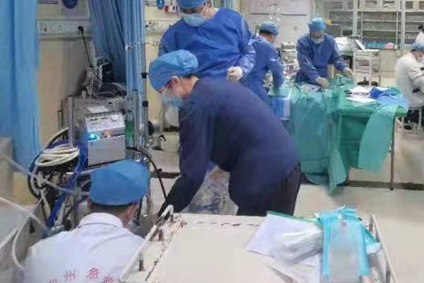 很快,患者被送達(dá)急診醫(yī)學(xué)科,值班醫(yī)生發(fā)現(xiàn)患者病情危重,面對(duì)命懸一線的危機(jī),實(shí)施體外膜肺氧合(ECMO)治療幾乎是搶救這位患者的“最后一根稻草”。搶救刻不容緩,他立刻電話召集急診醫(yī)學(xué)科、重癥醫(yī)學(xué)科ECMO團(tuán)隊(duì)前來支援。為了保證患者體內(nèi)的血液循環(huán)供給不中斷,醫(yī)務(wù)人員一直輪流為患者進(jìn)行心肺復(fù)蘇,盡可能地爭(zhēng)取寶貴的每一秒時(shí)間。