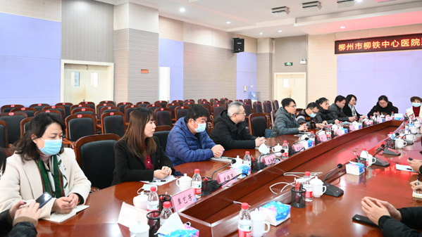 2月24日上午,柳州市柳鐵中心醫院黨辦、醫務部、人事科等職能科室一行13人來到柳州市人民醫院開展工作經驗交流,柳州市人民醫院相關科室負責人陪同參觀交流并出席座談會。