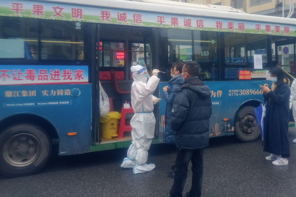 2月10日,韋卉跟隨柳州市人民醫(yī)院第三批援助百色醫(yī)療隊(duì)出發(fā)前往抗疫一線。初到平果市,她便作為小分隊(duì)隊(duì)長被分配到了流動(dòng)采樣點(diǎn),該采樣點(diǎn)是以一輛公共汽車為據(jù)點(diǎn),因地制宜搭建臨時(shí)采樣點(diǎn)開展采樣工作,市民隨叫隨停,對(duì)于行動(dòng)不便群眾,還提供上門采樣服務(wù),力爭“不落一戶、不漏一人”。