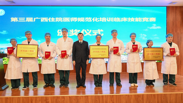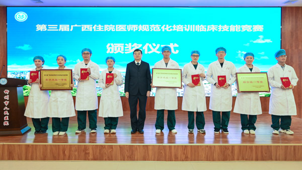 專業(yè)基地住培醫(yī)師獲得第三屆廣西住院醫(yī)師規(guī)范化培訓(xùn)臨床技能競賽手術(shù)組一等獎(jiǎng)的優(yōu)異成績,參賽學(xué)員獲得最佳選手榮譽(yù)。基地導(dǎo)師積極參與教學(xué)工作,嚴(yán)格按照《住院醫(yī)師規(guī)范化培訓(xùn)內(nèi)容與標(biāo)準(zhǔn)(試行)》外科專業(yè)細(xì)則對學(xué)員進(jìn)行培訓(xùn),規(guī)范開展教學(xué)查房、病例討論、小講課等教學(xué)活動(dòng)。實(shí)行“一對一”的導(dǎo)師負(fù)責(zé)制,嚴(yán)格按照國家和醫(yī)院的管理規(guī)定發(fā)放住培學(xué)員薪酬和績效。擁有滿足外科技能培訓(xùn)的各種模型及器材,定期對住培學(xué)員進(jìn)行技能培訓(xùn),在醫(yī)師資格考試及住培結(jié)業(yè)考試前組織學(xué)員進(jìn)行專項(xiàng)培訓(xùn)。