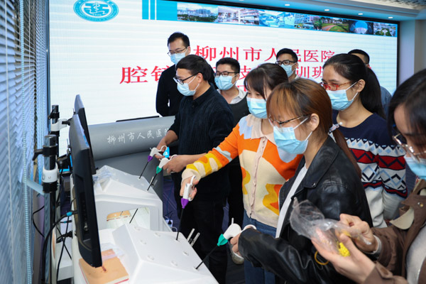 為提高住培醫(yī)師腔鏡基本技能操作水平,基地還開設(shè)了腔鏡模擬培訓(xùn)班,通過培訓(xùn),可以增強(qiáng)住培醫(yī)師眼、心、手之間的相互配合和雙手的協(xié)調(diào)能力,使住培醫(yī)師具備腔鏡初步的方向感與手感,從而使住培醫(yī)師對腔鏡的應(yīng)用接近臨床手術(shù)要求,不斷提高技藝打下堅(jiān)實(shí)的基礎(chǔ)。