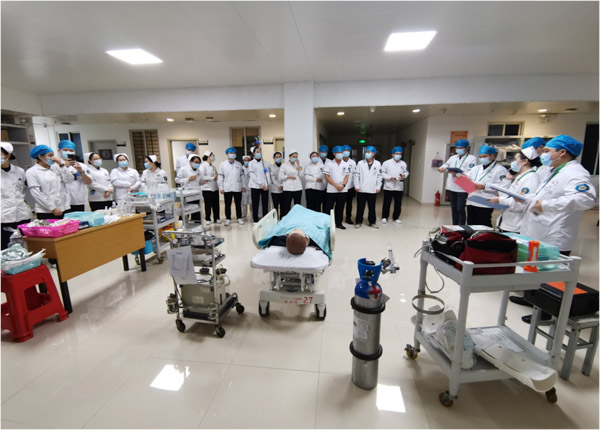 急診醫學科在建立完整的功能區域的基礎上,完善包含院前急救、預檢分診、急診搶救室、急診手術室、急診監護病房的完整的急救鏈,進一步明確各區域主診醫生負責制,層層壓實崗位職責,強化責任落實。通過建立完整的院前救援—院內急救—重癥監護三環相扣的緊急醫療救護體系,培養了一支訓練有素的院前救援、院內急救的應急救援隊伍。