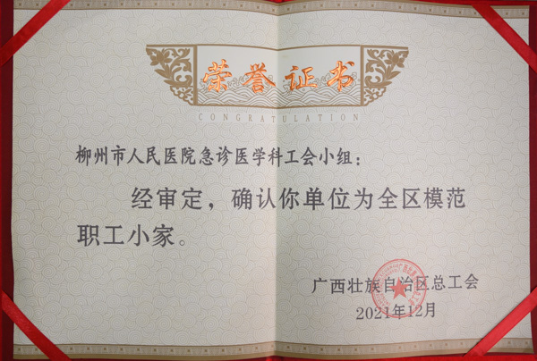 此次獲評自治區“模范職工小家”,既是對柳州市人民醫院急診醫學科工作的肯定和鞭策,也是對全院干部職工的激勵和鼓舞。柳州市人民醫院全體干部職工將以此為動力,向先進看齊,繼續真誠服務、守護人民健康,不斷增強全院職工的凝聚力和戰斗力,為醫院高質量發展貢獻更大力量!