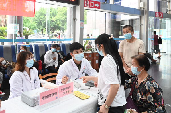活動現場,醫務人員與前來咨詢的群眾親切交談,耐心為群眾解答疑問,宣傳控煙健康教育相關知識,倡導他們養成良好的健康、文明、進步的生活方式,并對控煙政策、吸煙危害、戒煙好處、如何戒煙等開展一對一宣講,同時還為過往群眾免費測量血壓、發放健康宣傳手冊、普及基本健康保健知識等。