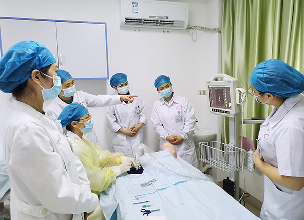 柳州市人民醫院作為首批廣西靜脈治療專科護士培訓基地之一,掌握了超聲引導下的PICC置管術、經頸外靜脈途徑PICC置入術、中心靜脈導管并發癥處理和輸液港維護等先進護理技術。醫院腫瘤科作為本次培訓主要負責科室,科室主任及護士長高度重視,提前策劃,合理安排,為保證培訓效果,本次從課程設計到師資培訓、從教學模式到考核方法都進行了精心的設計安排,采用理論、模型演練和臨床實踐相結合的培訓模式,并根據學員的特點,制定個性化的帶教計劃,注重以問題為導向,發散大家的思維,提供靜脈治療臨床問題轉化為科研課題的思路;基地還為學員舉辦了講課比賽,為學員建立一個相互探討、爭鳴論理的學術平臺,培養授課能力。