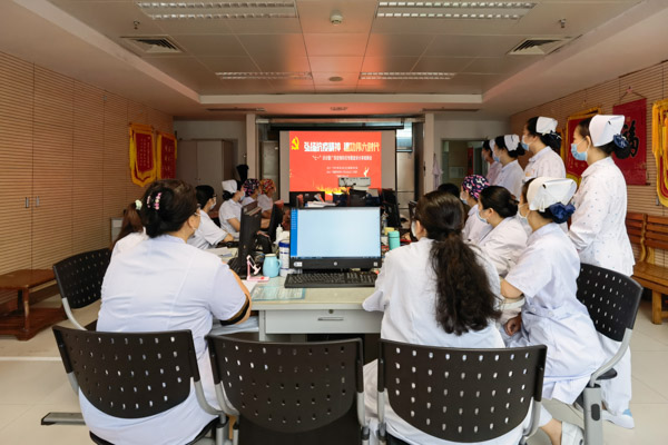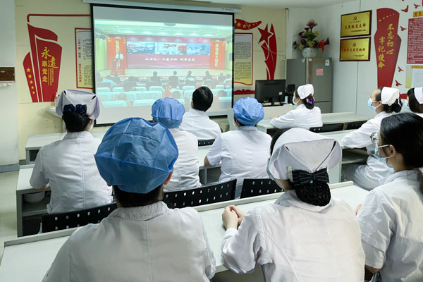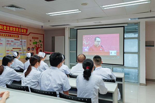 當(dāng)天上午,各黨支部紛紛組織黨員職工在各自科室,通過多媒體屏幕、電腦、電視等方式收看本次分享會。