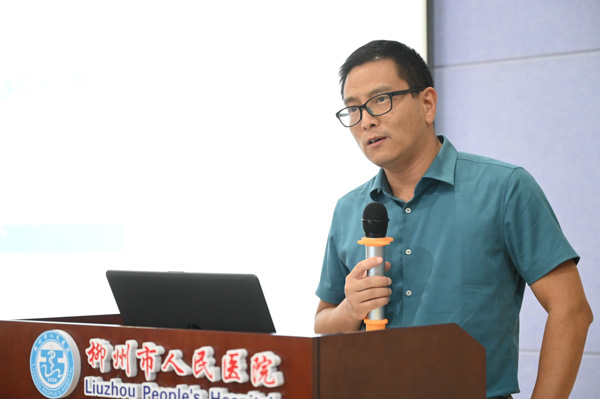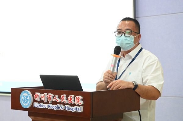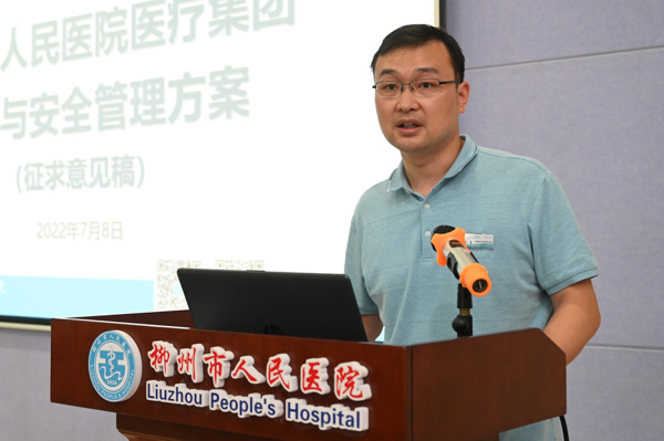 醫療聯合體辦公室主任譚柳春對《柳州市人民醫院醫療集團建設實施方案》進行解讀,詳細介紹了以“六個統一”為內部治理架構,以“六大中心”為醫院共享基礎和以“三個一體化”為建設目標的集團建設理念。