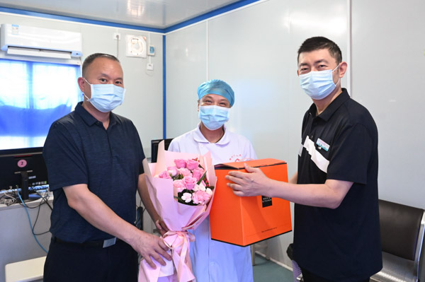 7月13日上午,柳州市人民醫(yī)院工會(huì)、離退辦相關(guān)負(fù)責(zé)人前往醫(yī)學(xué)檢驗(yàn)科、功能科、麻醉科、核酸檢測(cè)點(diǎn)慰問(wèn)7月即將退休的醫(yī)院老職工。