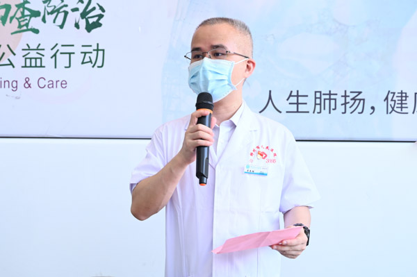 吳先球副院長為本次活動致辭,他表示,“肺癌篩查防治公益行動項目”是中國肺癌篩查防治模式的全新探索,有助于推動從“以治病為中心”向“以人民健康為中心”轉(zhuǎn)變,積極構(gòu)建科學完善的新型肺癌防治體系。同時,此次肺癌篩查防治公益活動創(chuàng)新方式,以肺癌篩查流動車的形式,借助最新醫(yī)學技術,面向社區(qū)居民,幫助肺癌高危人群開展健康篩查。希望通過此次活動可以讓市民在生活中更多地關注肺部健康,了解更多肺部健康知識,樹立肺癌防治意識,提高早篩意識。