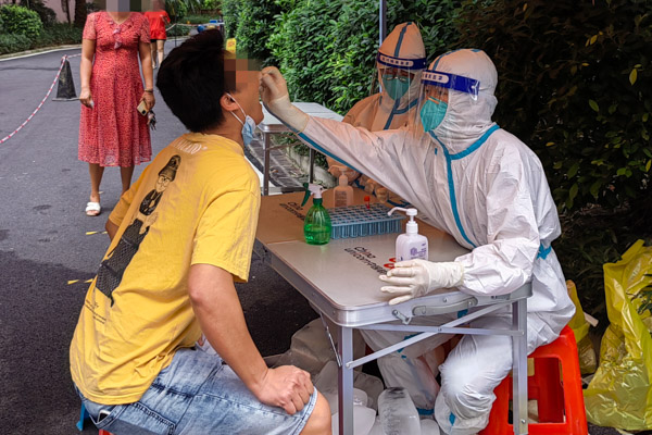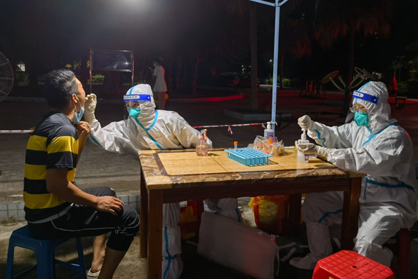 到了任務地點,我們熟練地穿起了防護服,開始了大規模核酸采樣工作。令我印象最深的是夜里大概11點多來采樣的一位阿姨,完成采樣后一直在對我說謝謝,眼睛紅紅的,突然眼淚就奪眶而出。原來阿姨的女兒也是北海當地醫院的一名護士,現在也在抗疫一線,阿姨看到了我們穿防護服的樣子,仿佛就看到了自己的女兒,思念、擔憂一下子涌了出來。阿姨的心情我能感同身受,醫療隊里的每一個人都有家人在遠方牽掛著,但是疫情當前,作為醫務人員我們責無旁貸,必須向前沖!