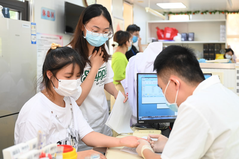 “獻血的大部隊來了!”一群年輕的面孔出現在獻血屋外。他們就是今年剛剛入職、正在接受崗前培訓的醫院新員工。在了解到醫院正在開展無償獻血活動后,他們一下課就馬上趕來參加。“我在學校的時候就經常參加獻血,沒想到剛來醫院就趕上這一次活動,聽科室的老師說我們醫院獻血的氛圍特別濃厚,今天算是見識到了。”今年剛剛入職的新員工蘇子清邊登記獻血信息邊說道。