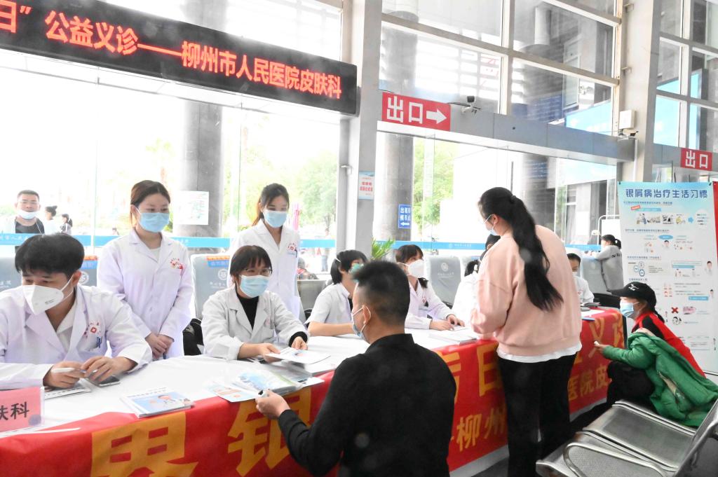 每年10月29日是“世界銀屑病日”,由國家銀屑病規范化診療示范中心廣西醫科大學第一附屬醫院牽頭,聯合全區4家診療中心單位、3家診療中心專病醫聯體、10余家銀屑病診療中心在建單位,攜手舉辦“廣西銀屑病公益義診活動”,旨在引起全社會對銀屑病的關注,提高人們對銀屑病及其患者的正確認識,給予銀屑病患者更多的關愛、尊重和幫助,使銀屑病患者得到更好的治療。10月28日,柳州市人民醫院皮膚科在門診一樓大廳組織開展了“攜手同心愛無‘銀’”聯合公益義診活動。