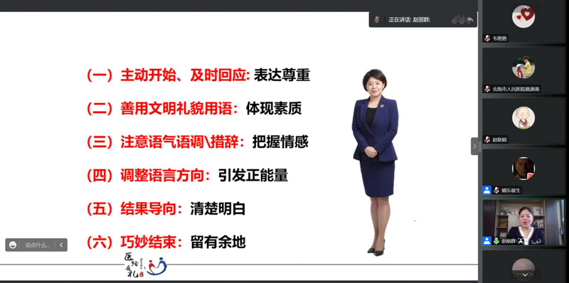 本次學習班邀請了中南大學博士、中國管理科學研究院學術委員會特約研究院趙麗群,廣西壯族自治區人民醫院護理部主任楊起主任護師、廣西醫科大學第一附屬醫院門診/急診科護士長黃霜霞主任護師、廣西醫科大學第二附屬醫院急診科護士長周冬娜副主任護師、柳州市人民醫院護理部副主任胡軼副主任護師分別從護患溝通、創傷救治、改善護理質量等多個方面進行線上授課。