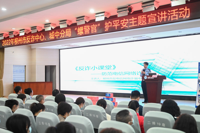 柳州市公安局網(wǎng)絡(luò)安全保衛(wèi)支隊(duì)民警蔣常浩通過(guò)《反詐小課堂》向大家普及當(dāng)下常見(jiàn)和高發(fā)的一些電信詐騙類(lèi)型,結(jié)合真實(shí)案例傳授防范電信網(wǎng)絡(luò)詐騙基本知識(shí)和方法,現(xiàn)場(chǎng)學(xué)習(xí)氛圍活躍,使反詐意識(shí)入腦入心。