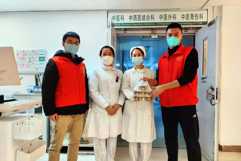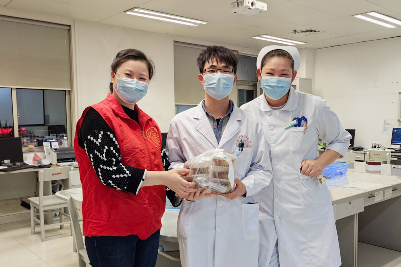 為關心關愛臨床一線醫務人員,2023年2月5日晚,柳州市人民醫院志愿服務隊聯合后勤保障部開展“辭舊迎新、團圓平安”送溫暖活動,組織16名志愿者走進全院60個病區,向在元宵佳節仍堅守崗位的醫務人員送去了450碗象征團圓幸福、蘊含濃濃關懷的湯圓,并向他們致以節日的祝福,讓溫暖和甜蜜縈繞在每一位職工心間。