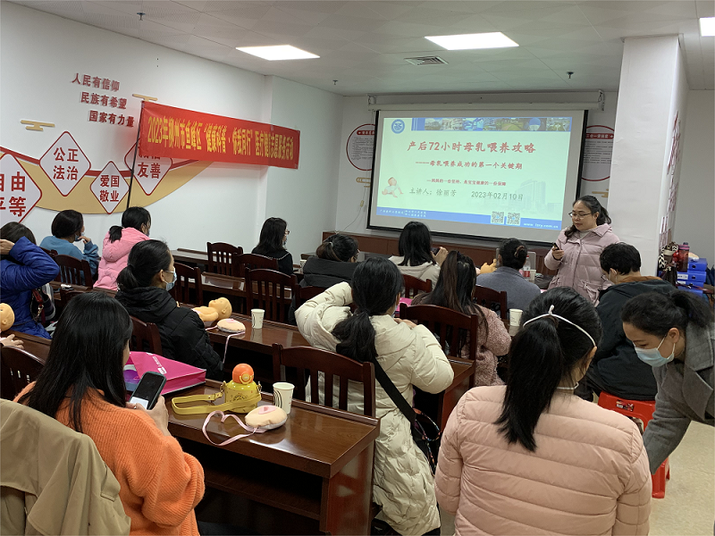 產(chǎn)科副主任護(hù)師徐麗芳針對(duì)產(chǎn)后72小時(shí)這個(gè)最初的哺乳關(guān)系順利建立的母乳喂養(yǎng)窗口期,結(jié)合泌乳原理,從新生兒出生后早接觸、早吸吮、早開(kāi)奶到按需哺乳、頻繁有效地吸吮,給孕媽媽和家屬們科普母乳喂養(yǎng)黃金72小時(shí)內(nèi)的關(guān)鍵做法的知識(shí)和技能。