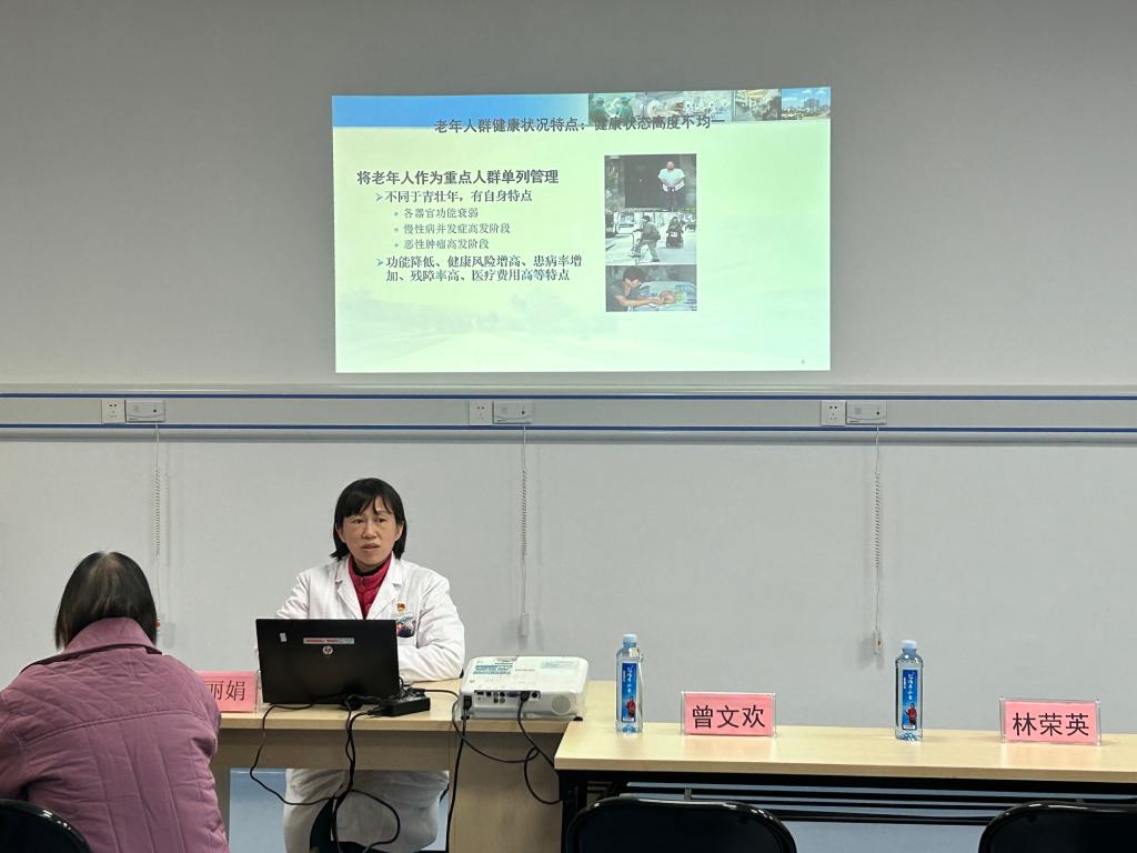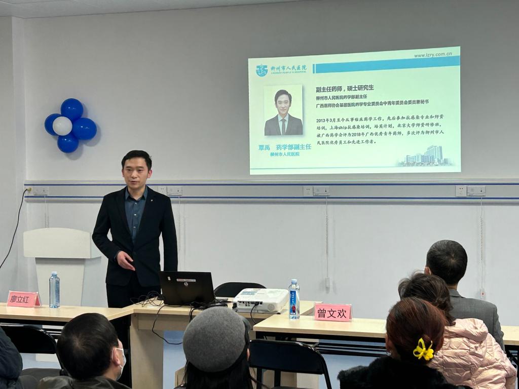 會上,柳州市人民醫(yī)院醫(yī)療集團潭中院區(qū)副院長兼河東街道社區(qū)衛(wèi)生服務中心廖立紅主任、健康服務中心唐勇主任介紹了安心門診的服務項目,柳州市人民醫(yī)院藥學部覃禹副主任致辭并進行藥品使用說明書適老化調(diào)查研究解讀,藥學部副主任藥師李俊明針對高血壓進行用藥指導并介紹家庭藥師的服務項目,副主任藥師曹利娟針對呼吸系統(tǒng)疾病對老年人進行用藥指導和健康宣教,全科醫(yī)學科副主任易秋艷介紹了老年人健康管理與照護注意事項。
