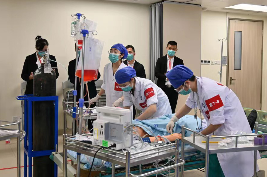 大賽分為初賽、決賽兩個階段。初賽為賽站式,柳人醫選手沉著應對,團結協作,內科組和全科組在高手如云的賽場脫穎而出。決賽為綜合模擬,內容圍繞臨床急救場景,開展不同階段的連續救治,考察住院醫師面對病患時的人文素養、臨場應變、應急處置和醫患溝通等能力。