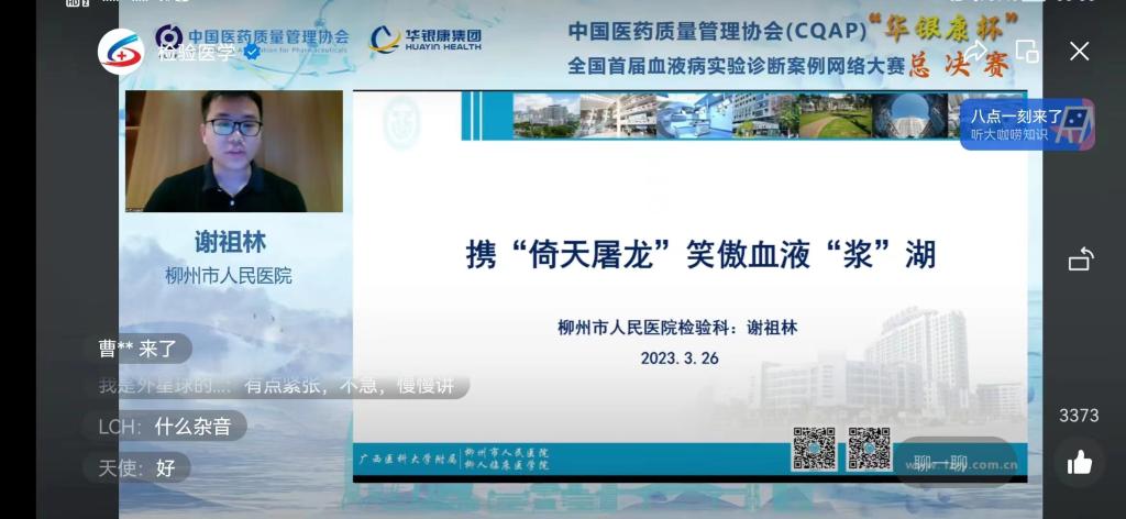 作為本次大會四大專題之一的中國醫(yī)藥質(zhì)量管理協(xié)會(CQAP)全國首屆血液病實(shí)驗診斷案例網(wǎng)絡(luò)大賽決賽并于會議最后一天以線上的形式進(jìn)行。去年由于疫情,初賽在全國以線上征集優(yōu)秀血液病實(shí)驗診斷案例的方式進(jìn)行。經(jīng)過全國層層選拔,10位來之全國各地的血液頂尖高手匯聚一堂,施展絕學(xué),一較高下。最終柳州市人民醫(yī)院醫(yī)學(xué)檢驗科謝祖林以《攜“倚天屠龍”笑傲血液“漿”湖》的優(yōu)秀案例脫穎而出,榮獲精彩案例。該案例以血常規(guī)異常散點(diǎn)圖,外周血涂片鏡檢、骨髓細(xì)胞學(xué)檢查及流式細(xì)胞術(shù)最終幫助病人確診漿細(xì)胞白血病,使得病人得到及時準(zhǔn)確治療。
