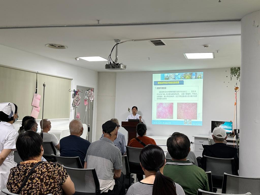 活動期間,醫院還舉辦了肺癌專題、鼻咽癌專題、腹盆部腫瘤專題、以及腫瘤靶向免疫專題等系列患教會。患教會內容詳實、通俗易懂,不僅解決了患者疾病困惑,提高癌癥防治意識,還提升了抗癌信心。肺癌患者梁女士是患教會的忠實聽眾,她表示,患癌后,心情低落,患教會把大家融到一起,在學習知識的同時,還可以互相分享抗癌心路,互相鼓舞,重塑自信。
