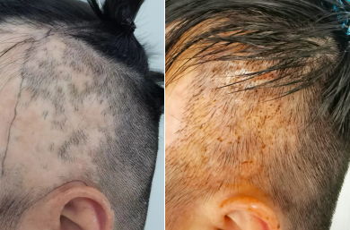 瘢痕性禿發也稱為疤痕性脫發,常見的誘因有燒燙傷、外傷、感染、手術等,導致毛囊破壞和瘢痕形成致永久性毛發缺失,而毛發移植術是解決瘢痕性禿發最直觀有效的方法。頭部瘢痕性禿發,瘢痕與脫發雙重的影響下易給患者造成巨大的心理壓力及陰影,因此,無論從功能上還是美觀上考慮,都需要進行及時有效的修復治療。但是瘢痕性禿發的頭皮修復難度較大,需要毛發移植團隊同時具備瘢痕修復和毛發移植技術,還要團隊具備遠期評估、聯合治療能力,患者才能在術后得到更好的植發效果。