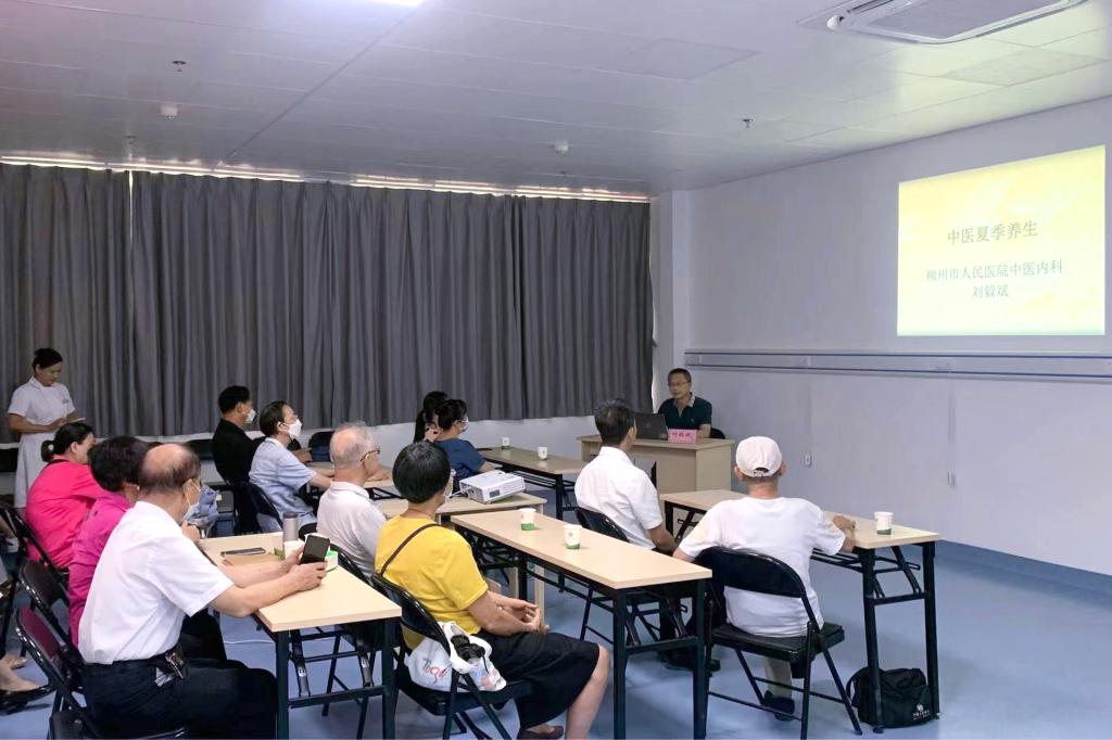 為普及夏季養生知識,防治群眾進入夏季養生的誤區。6月8日下午,柳州市人民醫院健康管理中心聯合中醫科專家、河東街道社區衛生服務中心全科醫生在健康管理服務中心舉行工行——健康沙龍專場分享會,為中國工商銀行柳州分行退休職工進行夏季養生及常見慢病的防治等方面的健康知識講座。