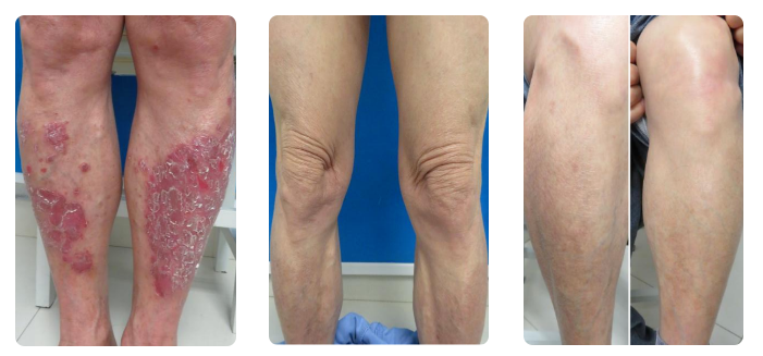 年邁的王老伯被銀屑病折磨了十余年之久,全身紅斑、斑塊、鱗屑伴瘙癢給他的生活帶來了巨大的困擾,此前他也曾在區內多家醫院尋求治療,病急時甚至還聽信了街頭的“治療秘方”,均未取得明顯的治療效果。得不到有效的治療,王老伯的病情愈發加重,全身紅斑、斑塊面積迅速擴散,并覆有厚厚的鱗屑,指甲還出現頂針樣改變,瘙癢難耐,生活難以自理。