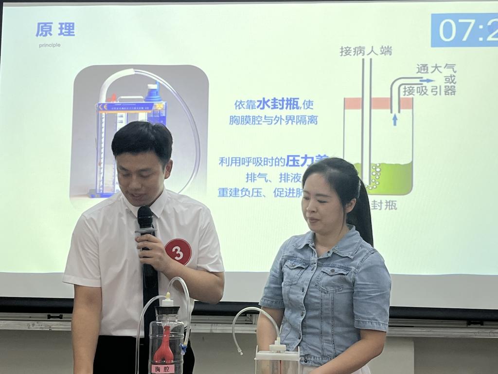 本次比賽匯集了來自全區(qū)不同醫(yī)療機(jī)構(gòu)共36名優(yōu)秀參賽選手。程海涵護(hù)士以《胸腔閉式引流的護(hù)理》為題,教學(xué)設(shè)計(jì)合理、思路清晰,將動(dòng)畫、短視頻、圖片等多媒體技術(shù)和教具有機(jī)結(jié)合,極大豐富了課堂上的教學(xué)元素,幫助學(xué)生構(gòu)建知識(shí)的同時(shí),注重啟發(fā)臨床思維,融入人文關(guān)懷。