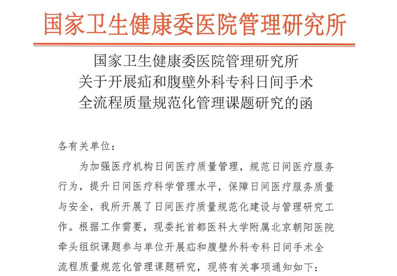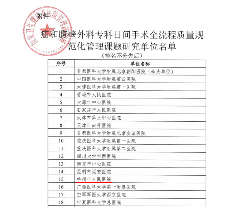 近日,國家衛(wèi)生健康委醫(yī)院管理研究所關(guān)于開展疝和腹壁外科??迫臻g手術(shù)全流程質(zhì)量規(guī)范化管理課題研究項(xiàng)目啟動(dòng)會(huì)在北京召開,全國共30家醫(yī)院加入該國家級(jí)多中心課題研究,柳州市人民醫(yī)院便是其中之一,也是柳州市唯一一家。