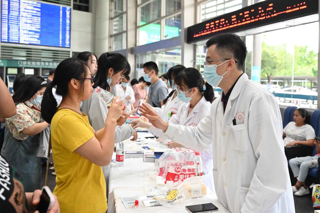 活動(dòng)當(dāng)天,門診一樓大廳前來參加檢測的市民絡(luò)繹不絕,許多入院就診的市民也被吸引,并在醫(yī)務(wù)人員的協(xié)助下通過現(xiàn)場報(bào)名參與了本次免費(fèi)檢查?;顒?dòng)現(xiàn)場,醫(yī)務(wù)人員們認(rèn)真地講解無創(chuàng)膠囊線的使用及注意事項(xiàng),耐心地引導(dǎo)受試者走完活動(dòng)流程,并一一解答了受試者提出的疑惑,并科普了如何通過健康的飲食生活方式避免幽門螺桿菌的感染、感染后的檢測方式以及治療建議。