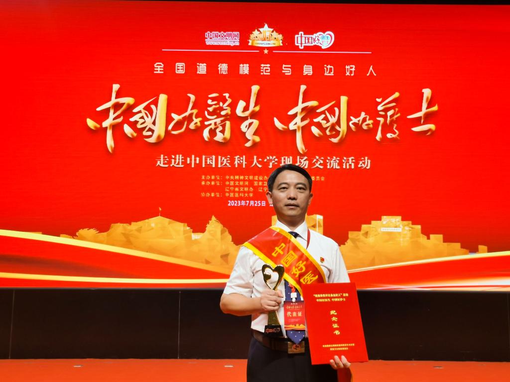 為深入學習宣傳貫徹習近平新時代中國特色社會主義思想,大力弘揚紅醫精神,傳遞向上向善的正能量,7月25日,中央精神文明建設辦公室和國家衛生健康委在中國醫科大學舉辦全國道德模范與身邊好人“中國好醫生、中國好護士”現場交流活動,講述賡續紅色血脈、維護人民健康的感人故事。“中國好醫生、中國好護士”2023年5月月度人物、柳州市人民院感染性疾病科主任蔣忠勝受邀參加。
