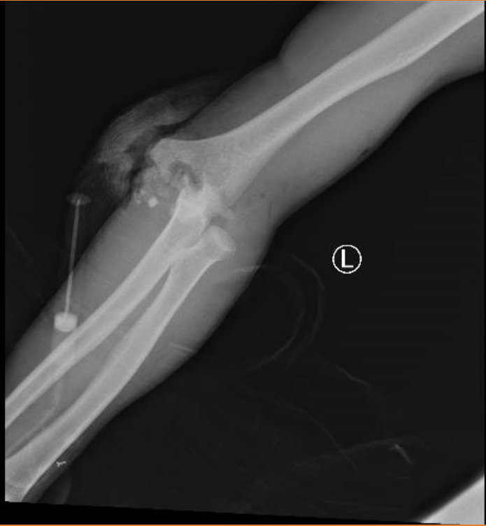 經歷過左肘關節脫位閉合復位術、左肱骨骨折切開復位外固定術、左上肢外固定架固定、雙肘關節韌帶修補術、肘關節穩定術、肘關節游離體摘除術、肘關節松解術等十多項手術后,劉先生擺脫了骨折、脫位帶來的疼痛困擾。可高處墜落帶來的肱骨滑車關節面丟失,且常規內固定無法讓他的手肘正常彎曲。劉先生想要通過進一步治療改善生活質量。