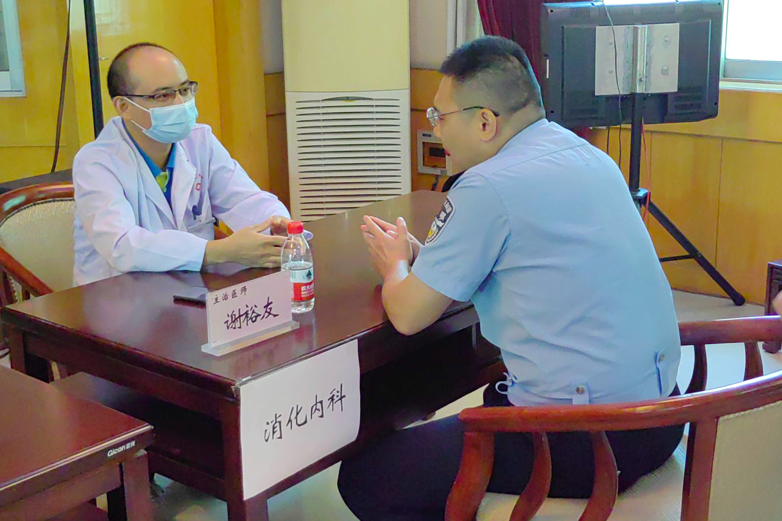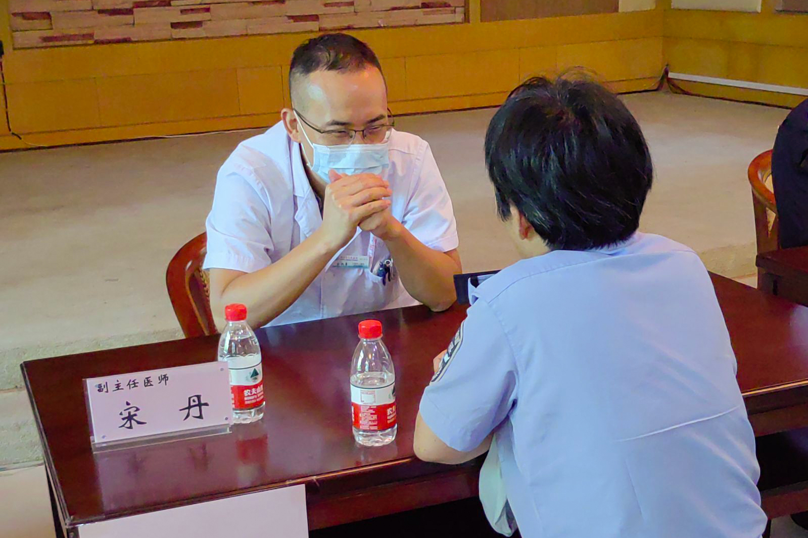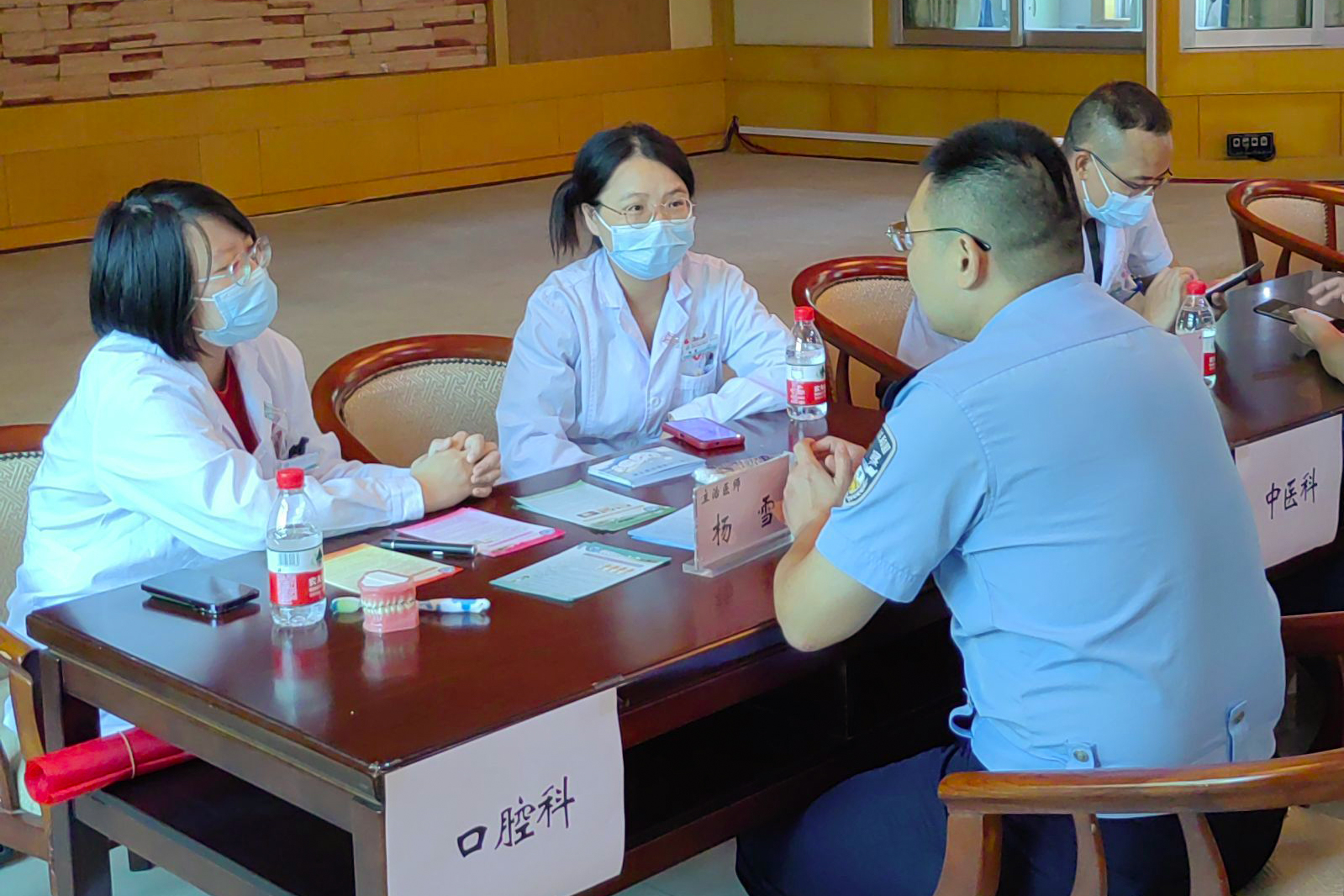 麻醉科主任游志堅及睡眠中心張旭東主治醫師對前來就診的民警普及睡眠障礙等相關知識。