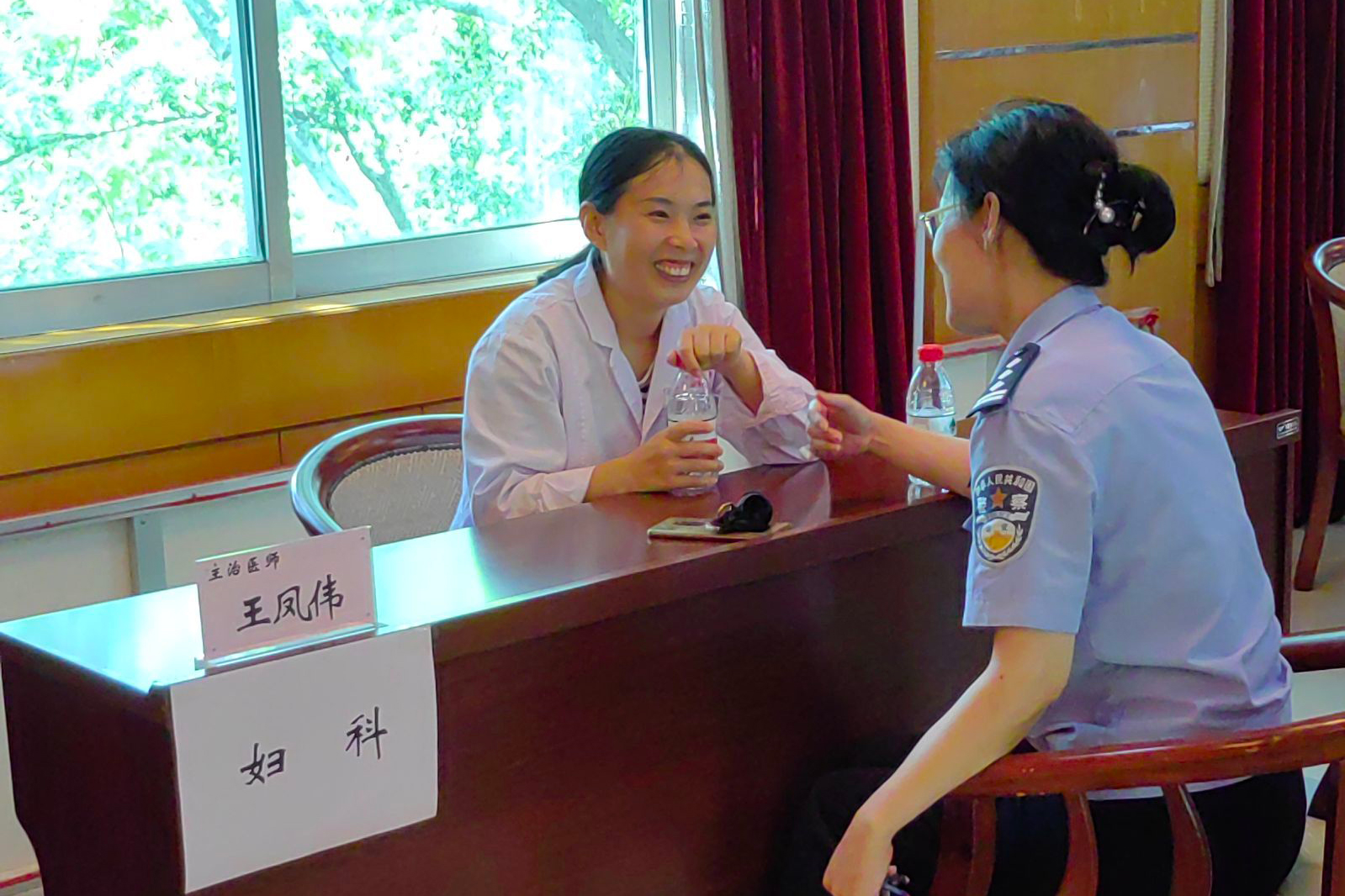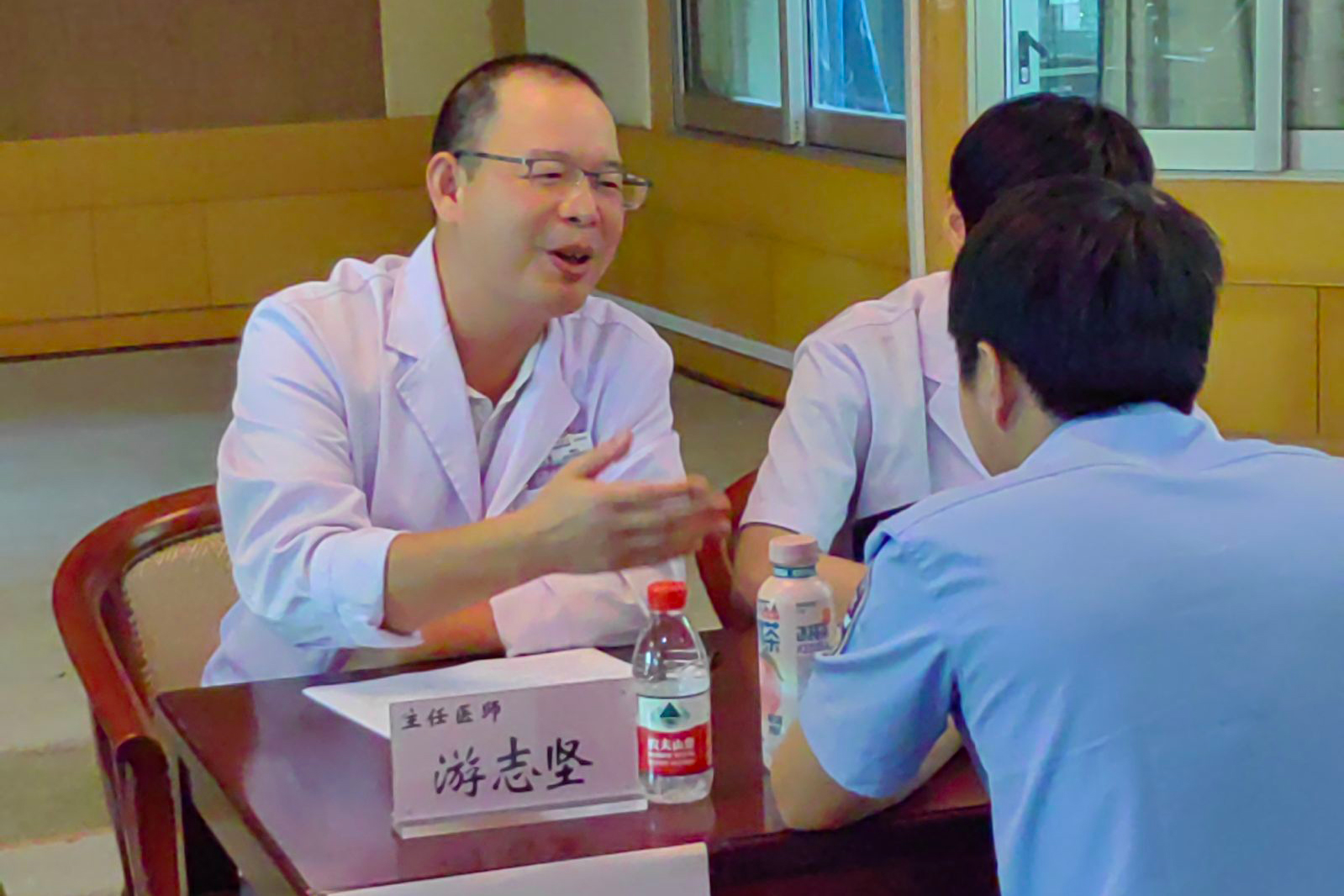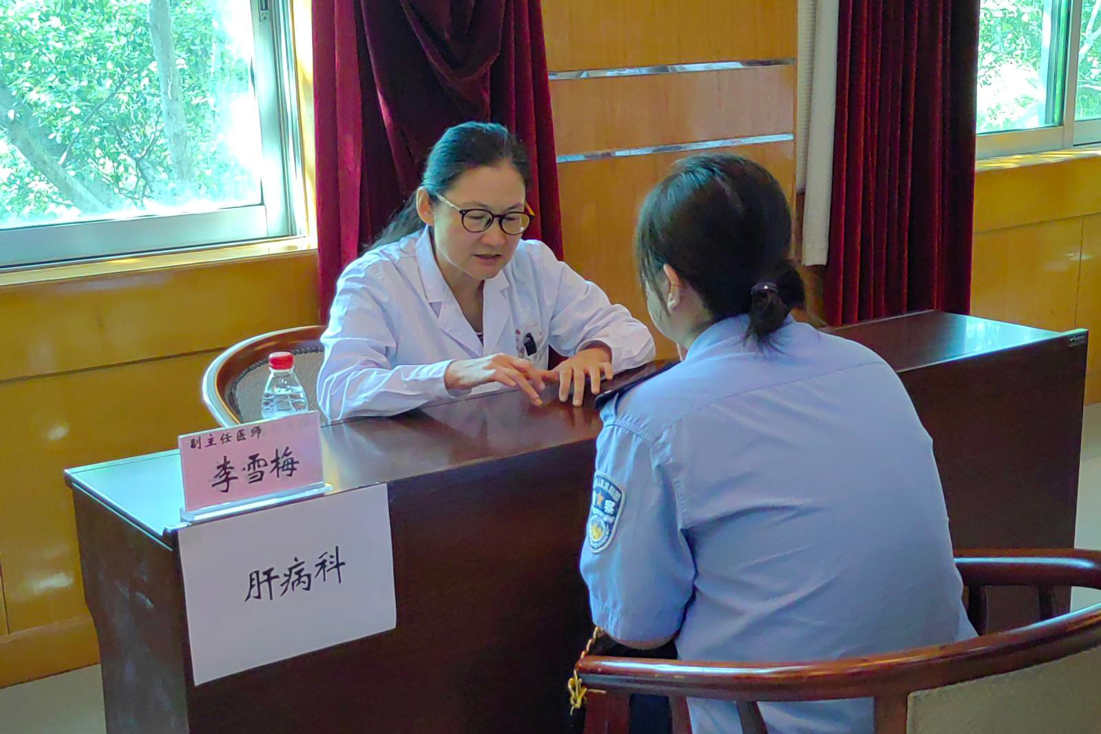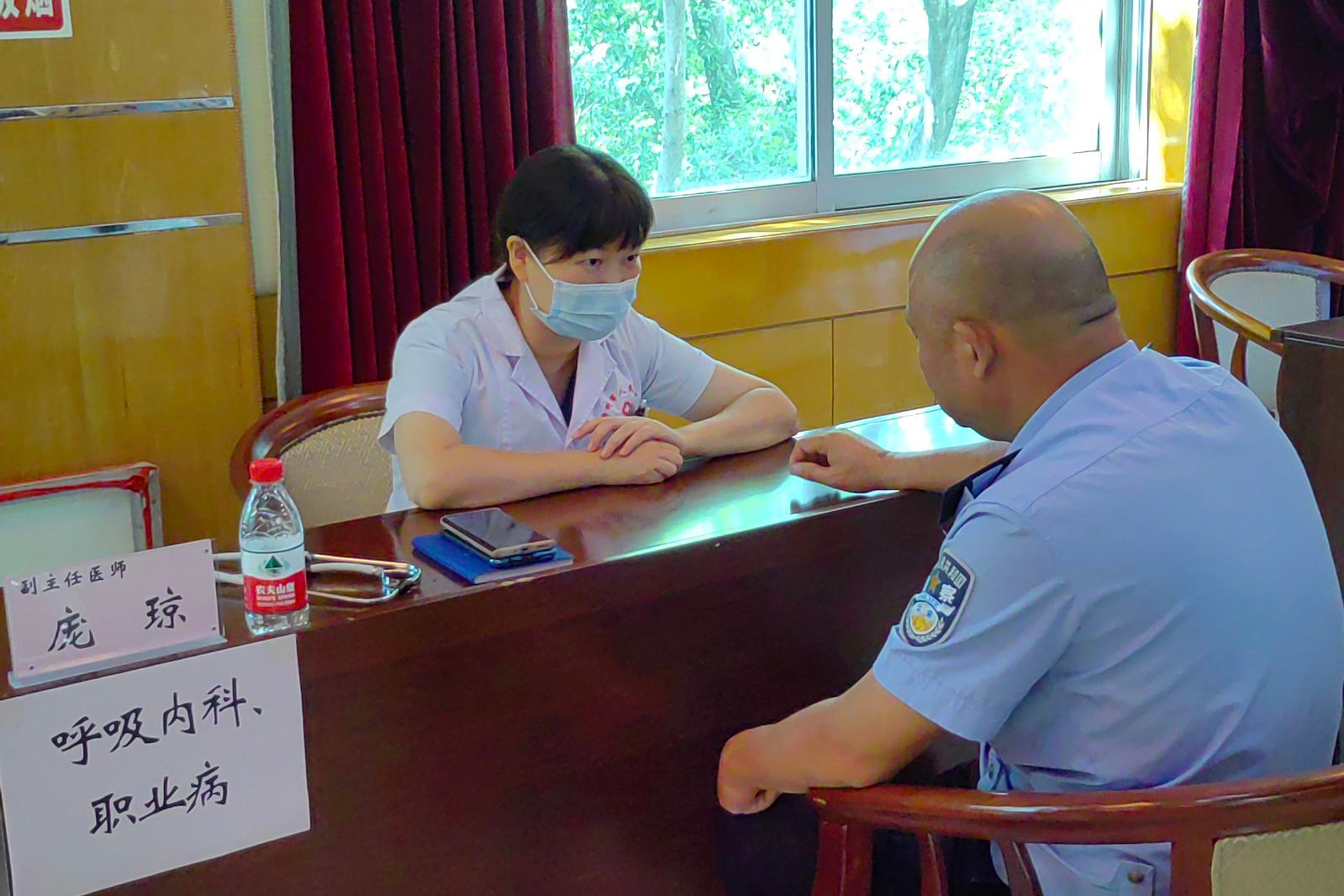 麻醉科主任游志堅及睡眠中心張旭東主治醫師對前來就診的民警普及睡眠障礙等相關知識。