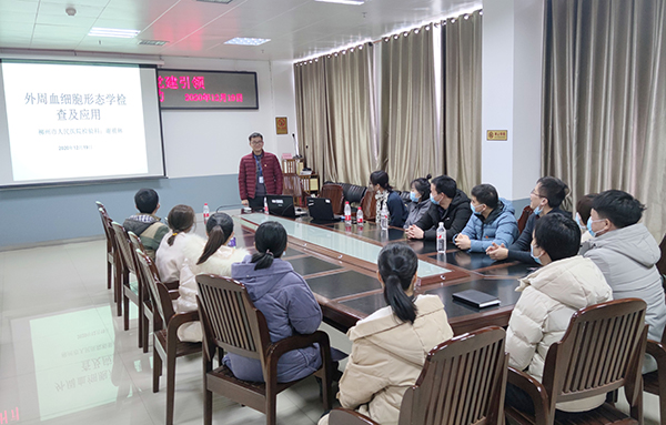 柳城縣人民醫院檢驗科主任劉綱毅代表科室表示歡迎,活動開始后我院檢驗科黨支部黨員歐紅娟、謝祖林兩位同志與醫聯體單位技術人員在業務工作上就外周血相關技能培訓及外周血細胞形態學檢查與應用等方面進行交流,并進行技能操作演練,大家收獲頗豐,為醫聯體單位進一步制定外周血涂片標準操作流程提供參考。