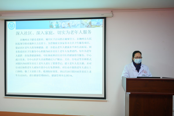 座談會上,河東街道社區衛生服務中心副主任周憲鳳首先向各位專家匯報了河東街道社區衛生服務中心醫養結合工作開展情況,從貫徹落實國家基本公共衛生服務項目,簽約家庭醫生、家庭藥師服務開展等幾個方面做了詳細的闡述。她表示,在今后的工作中,中心醫務人員將更加努力,立足崗位,肩負責任,讓轄區老年人真正享受到“老有所養,老有所醫”的傾情關懷。