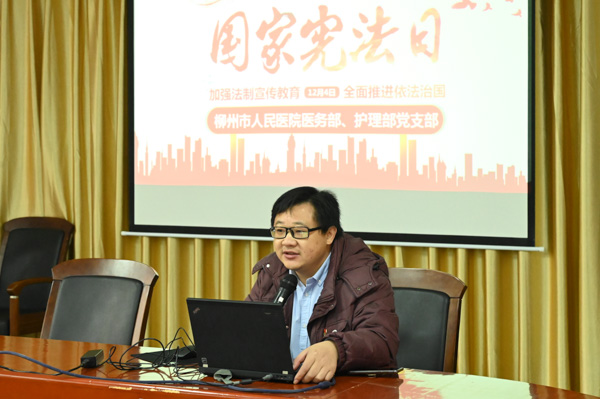 12月4日上午,醫務部、護理部黨支部在第二會議室開展憲法日主題黨日活動。活動由溫懌濤黨支部書記主持,由法務部黃華強科長介紹了國家憲法日的由來及今年的活動主題等憲法知識,會上播放了《憲法普及知識》《憲法宣誓制度》視頻短片。通過憲法主題黨日活動,增強了黨員的憲法意識,提升黨員的法治觀念,推動黨員自覺維護憲法權威。
