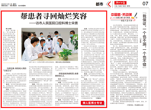 2011年,來自四川的宋勇在西安交通大學附屬口腔醫(yī)院工作期間考取了醫(yī)學博士。3年后,宋勇放棄了在省會城市工作的機會,來到了柳州市人民醫(yī)院,用自己的專業(yè)所長造福龍城百姓,幫助患者尋回燦爛笑容。