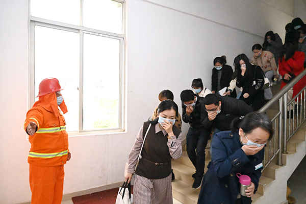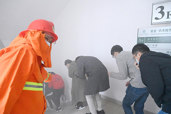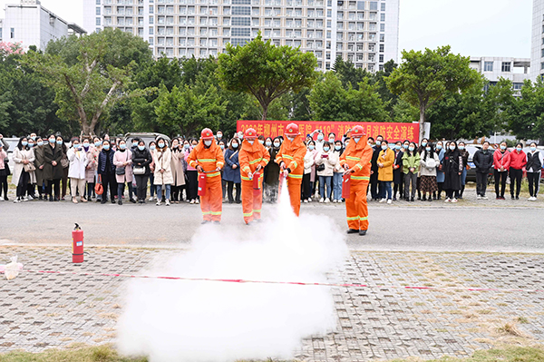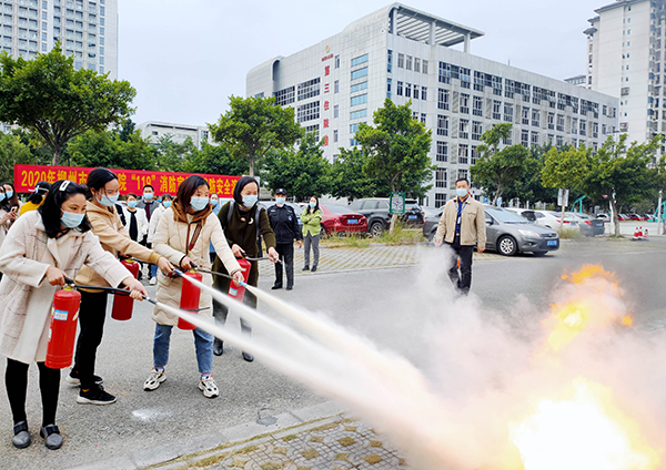 隨后,參加培訓人員在辦公樓食堂東門進行了火災應急疏散演練,大家從安全出口通道俯身、遮掩口鼻,快速、有序地撤離大樓。最后參加培訓人員在教學樓前空地進行了滅火實操演練,學習了滅火器的正確使用方法和操作要領,提高撲救初期火災的能力。