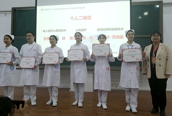 我院一直非常重視護理教學工作,此次大賽,得到了醫院領導的高度重視及大力支持,成績的取得得益于醫院護理教學團隊的共同努力,特別是指導老師夜以繼日的專業指導。我院臨床護理專業作為廣西臨床重點專科,多年來承擔廣西多個醫學院校護理本科、專科實習教學工作,培養了一支優秀的護理教學團隊。