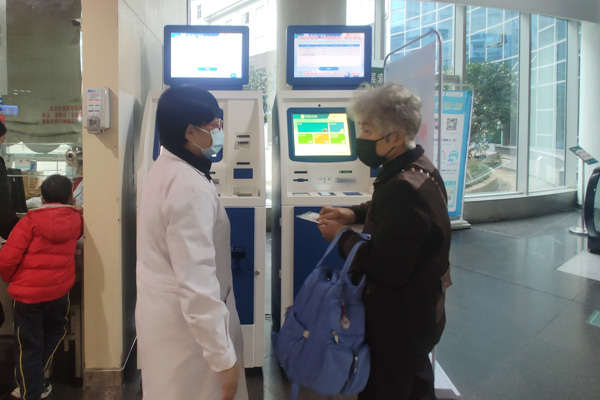 出于疫情防控需要,患者進(jìn)入門診大廳前必須佩戴口罩。若是忘記隨身攜帶口罩,年輕人可以用智能手機(jī)在大廳門口的一次性口罩自助販賣機(jī)進(jìn)行購(gòu)買,那么沒有智能手機(jī)的老年人呢?“如果是遇到不會(huì)使用自助販賣機(jī)購(gòu)買口罩的老人,測(cè)溫處的導(dǎo)診護(hù)士和志愿者都會(huì)免費(fèi)為其提供口罩。門診大廳外還有提供患者掃碼租借輪椅的服務(wù),老年人無(wú)法用手機(jī)掃碼,也會(huì)有志愿者引導(dǎo)其及陪人移步導(dǎo)診臺(tái)進(jìn)行人工租借。”該院門診部主管護(hù)師李莉說。