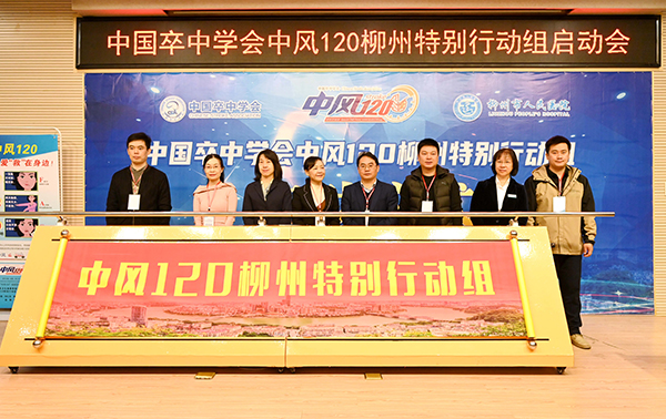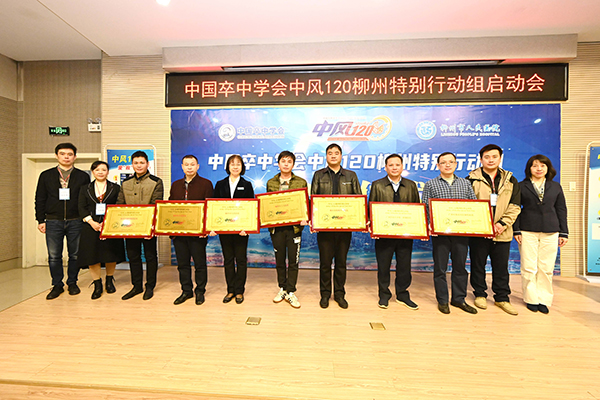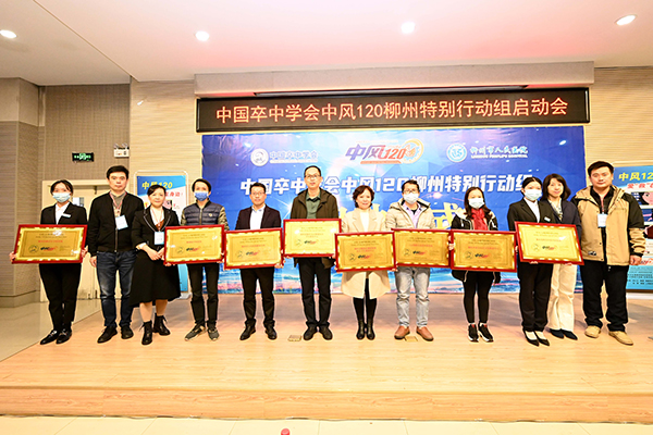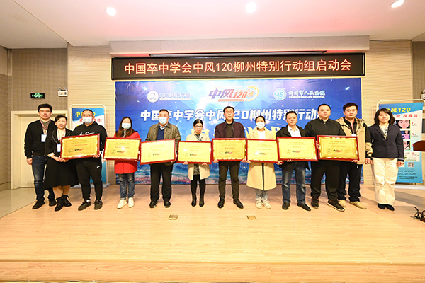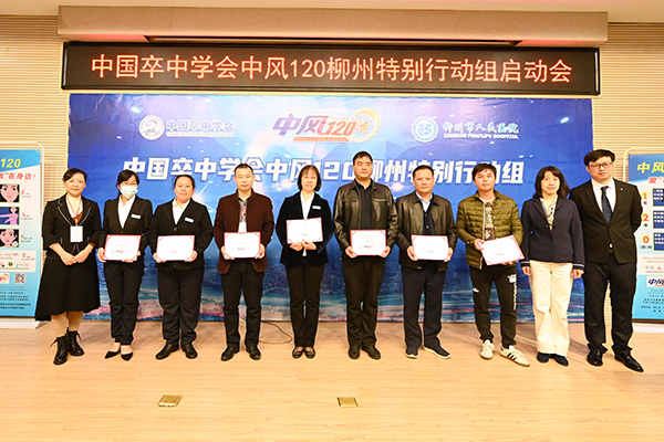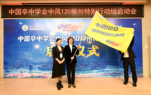 隨后,中國卒中學會中風120柳州特別行動組啟動儀式開始,本次啟動會正式確立柳州市人民醫院神經內科為中風120柳州特別行動組組長單位,神經內科陳紅主任、高文副主任分別擔任行動組組長、副組長。中國卒中學會中風120創始人趙靜教授為行動組組長和組員單位進行了授旗、授牌。