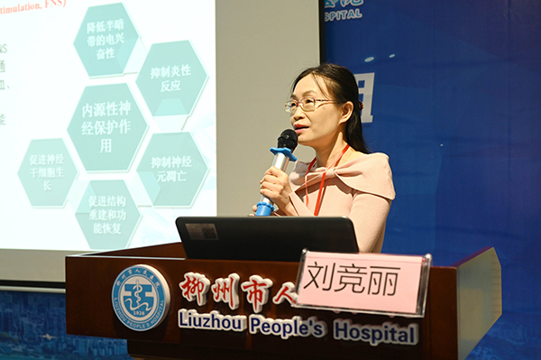 廣西卒中學會副會長、廣西卒中質控中心副主任、廣西醫科大學第一附屬醫院神經內科劉競麗教授分享了“電刺激小腦頂核腦保護機制的分子研究”