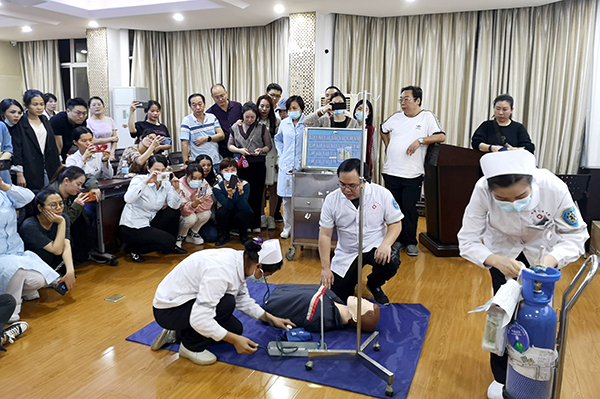 接下來,為了強化受訓人員的理論知識,市民急救學校的醫護團隊現場為大家演示了過敏性休克的醫護搶救配合,詳細講解了當患者出現心跳呼吸驟停、氣道梗阻等癥狀時,醫護搶救配合的步驟及方法,理論與實踐相結合的教授方法,引起了該院醫務人員的濃厚興趣,大家積極開展了研討問答,學習氛圍輕松而熱烈。