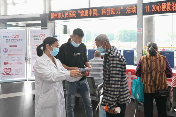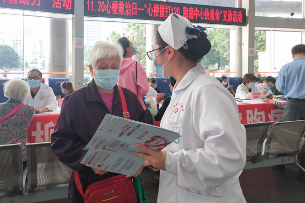 2020年11月20日是我國(guó)第七個(gè)“心梗救治日”,柳州市人民醫(yī)院胸痛中心聯(lián)合心血管內(nèi)科、神經(jīng)內(nèi)科、內(nèi)分泌科、全科醫(yī)學(xué)科、營(yíng)養(yǎng)科本著為提高公眾對(duì)心梗嚴(yán)重性與防治重要性的認(rèn)知,普及急性心梗的規(guī)范化救治的信念,在我院門診大廳及全科醫(yī)學(xué)科患教室開(kāi)展“11.20中國(guó)心梗救治日——心梗撥打120,胸痛中心快救命”主題義診宣講活動(dòng)。